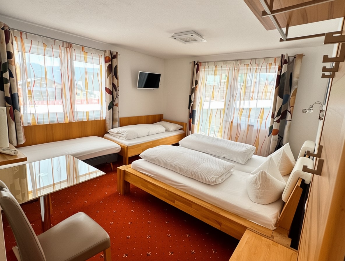 Zapraszamy do odkrywania uroków austriackich Alp w naszych przytulnych pokojach gościnnych. To wyjątkowe miejsce, gdzie tradycja łączy się z komfortem, idealnie nadające się na relaks po pełnym wrażeń dniu w górach. Nasze starannie zaprojektowane pokoje oferują nie tylko przepiękny widok na górskie szczyty, ale także wygodne łóżka oraz różnorodne udogodnienia. Bez względu na to, czy planujesz spędzić czas aktywnie na nartach, czy cieszyć się leniwym popołudniem przy kawie, u nas znajdziesz idealne warunki do odpoczynku.